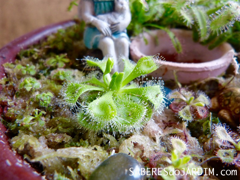 Acrescentei droseras burmannii red, droseras venusta e mais droseras capensis e tirei o musgo para abrir espaço para as carnívoras.