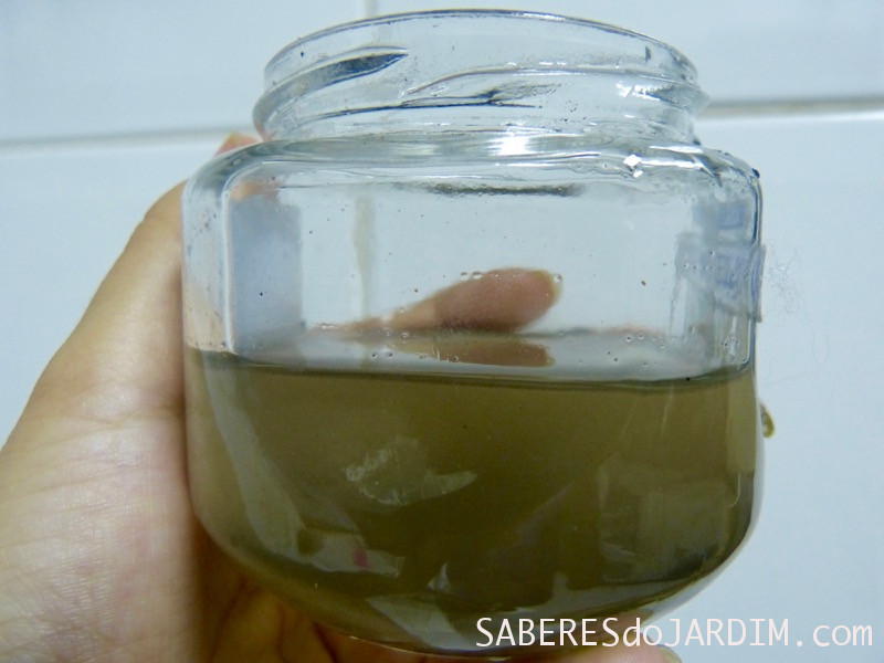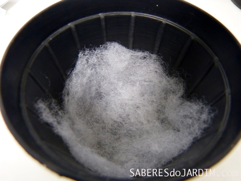 A água desceu passando pela lã e as partículas que atrapalharam a primeira tentativa ficaram presas, mas ainda tive que esperar por algumas horas até o pouco de terra que passou decantar.