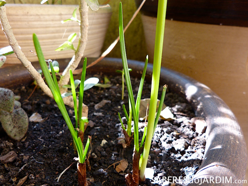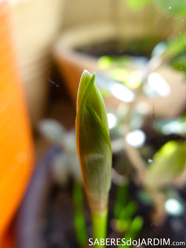 O crescimento dos brotos também foi muito rápido, de um dia para o outro eles cresciam visivelmente. Várias hastes novas apareciam simultaneamente saindo dos bulbos.