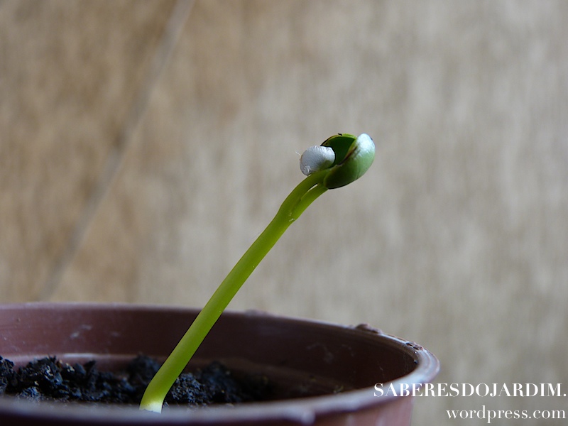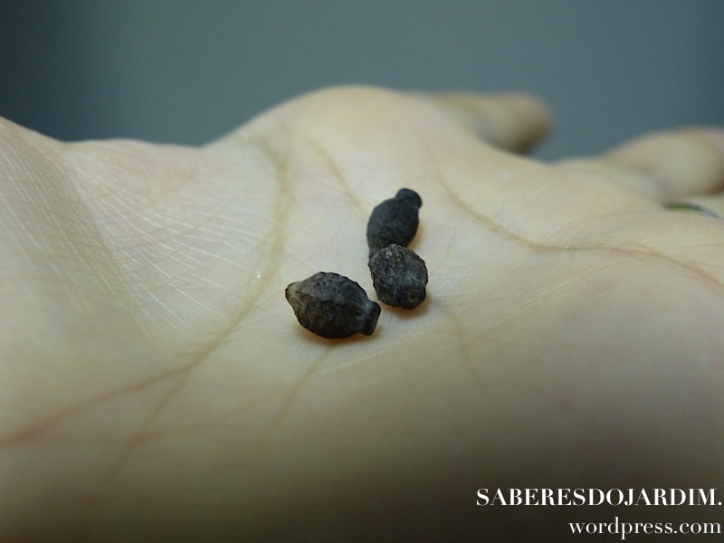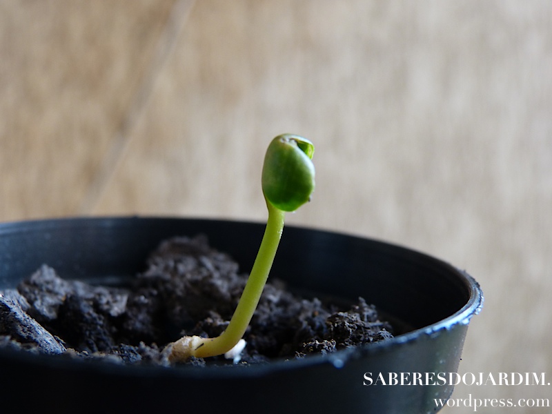 As sementes não são difíceis de achar e germinam rápido. As minhas eu plantei em 01/12/13 e germinaram em 07/12/13. O crescimento da muda é muito rápido e vigoroso. Sugiro que não se use sementeiras ou vasinhos muito pequenos para o plantio. Um dos erros que cometi na primeira vez que a plantei foi esse. Prefira um vaso um pouco maior. Aqui uso vasos que são duas vezes maiores que um vaso de violeta. Não são muito grandes, mas são suficientes para acomodá-la até o transplante.
