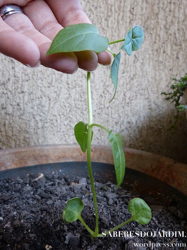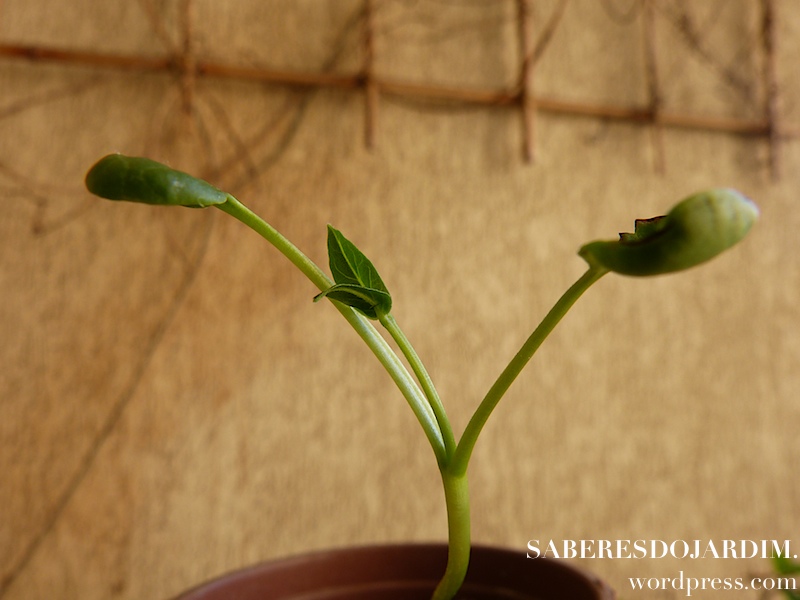 Minha primeira experiência de plantio deu certo, mas perdi a muda depois. Passou um tempo até que eu plantasse as sementes novamente porque é uma planta que exige espaço e eu não tinha nenhum vaso digno para plantá-la. Quando surgiu uma vaga em um dos vasos maiores eu plantei duas mudas que são as que vou mostrar nesse post.