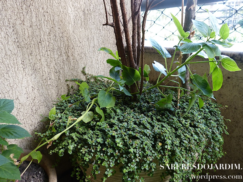 A propósito, qual é a forração do seu vaso do manacá de cheiro? Está linda! Me parece “dinheiro em penca”, será?