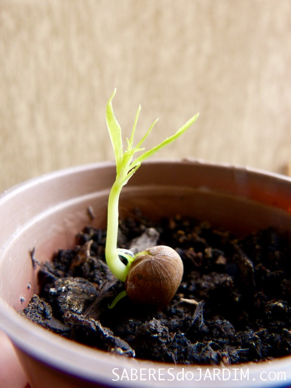 Eu sempre pesquiso sobre sementes que nunca cultivei antes de plantar, mas, como publiquei fotos na página do blog, a Camila me deu a dica mais valiosa (e fundamental) sobre elas, abrir a casca e plantar a amêndoa. Continuei pesquisando e descobri que além de abrir é necessário deixá-las na geladeira para germinarem.