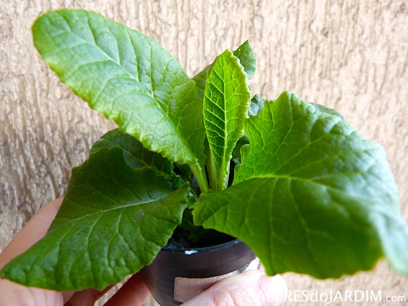Mesmo que tenha sido lento, eu curti muito o crescimento da minha prímula. As folhas cresceram viçosas e sempre com uma cor verde intensa e brilhante.