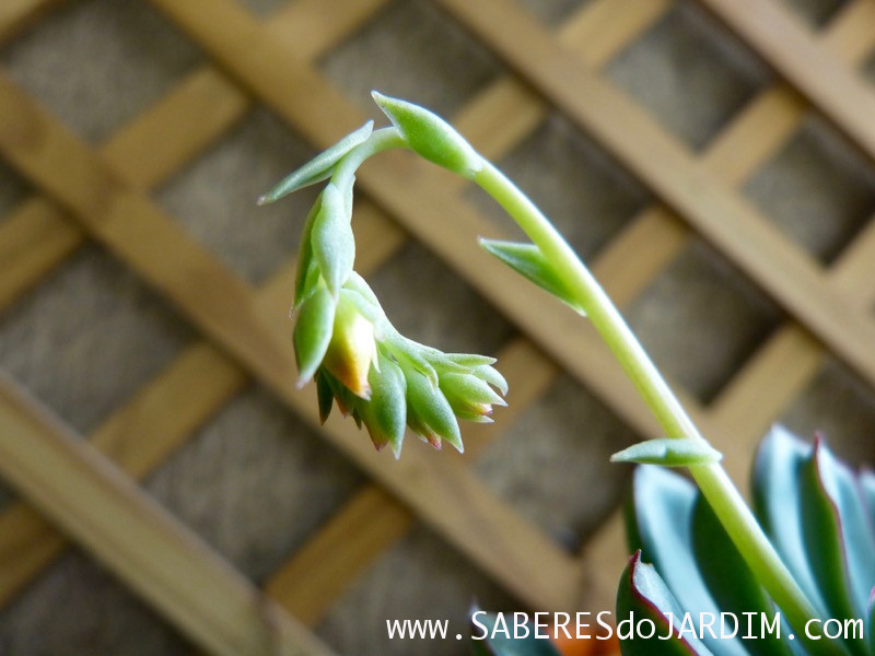 A floração da minha echeveria ocorreu em agosto, mas do início da formação dos pendões até as flores abrirem demorou bastante. Bom momento para praticar a virtude da paciência.
