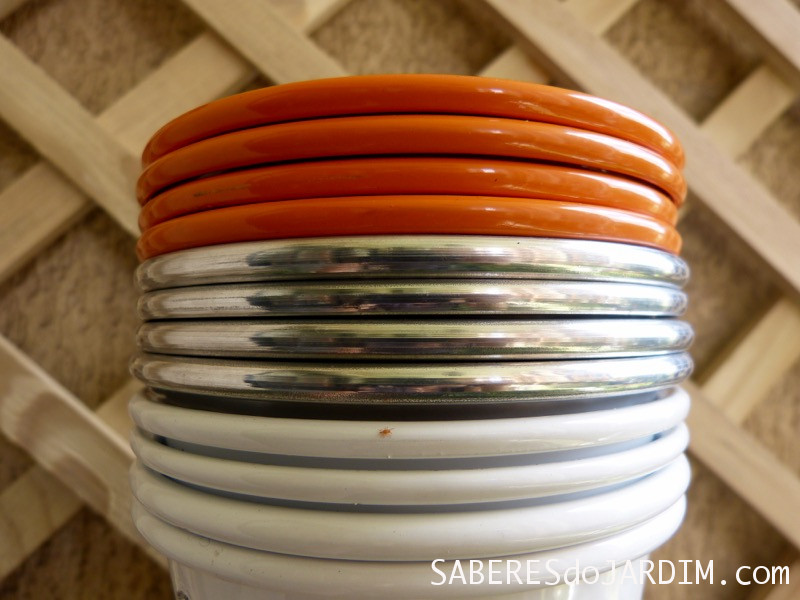 Ainda estou em fase de testes e pretendo analisar muito bem, porque se achar que é preferível barro eu troco tudo depois e vou ter muitos vasos de metal para dar de presente com mudinhas.