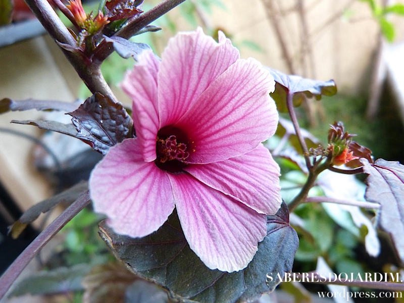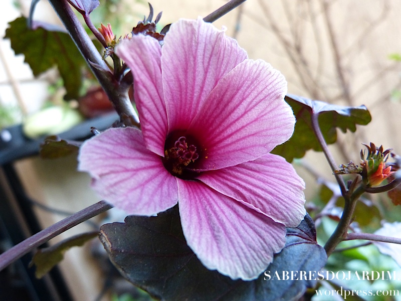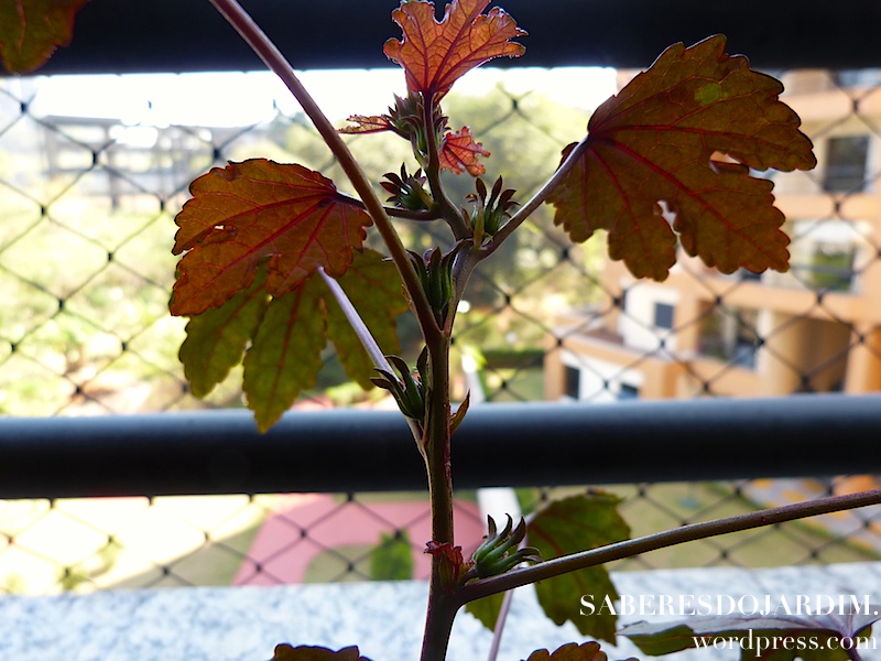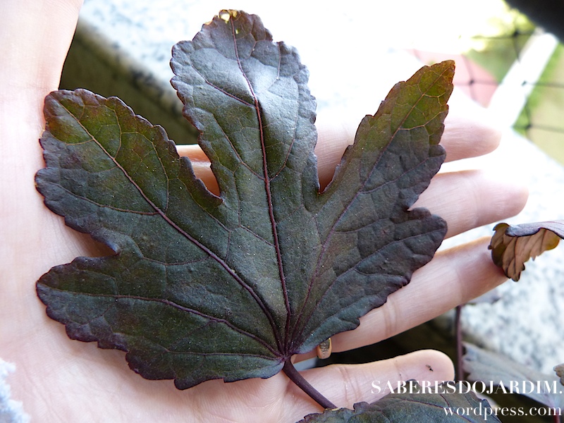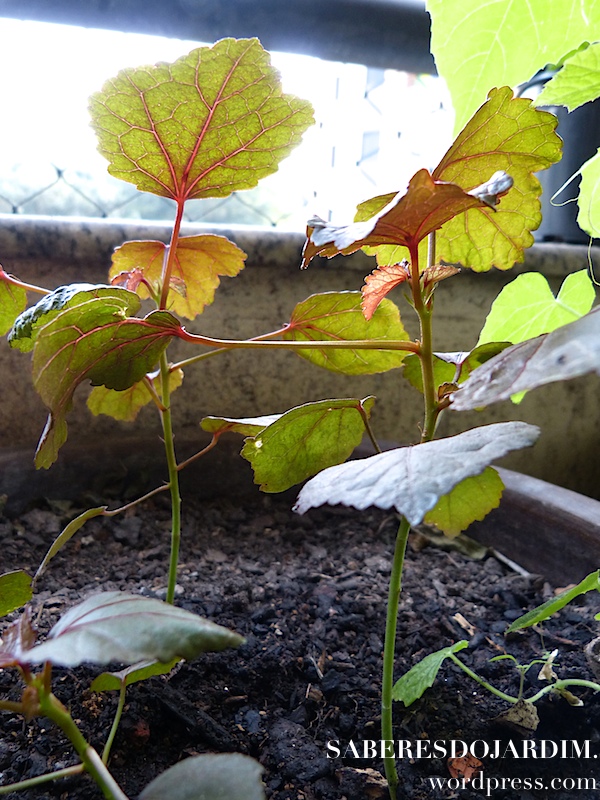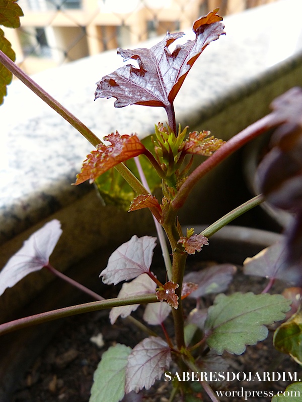 Algo importante sobre essa variedade é que ela não é a tradicional vinagreira, que tem folhas verdes e flor clara. Essa variedade é conhecida como vinagreira roxa, mas na verdade o que muda não é só a cor, são espécies diferentes. A vinagreira tradicional é hibiscus sabdariffa e essa hibiscus acetosella. A própria Camila fez um post falando sobre as duas espécies.