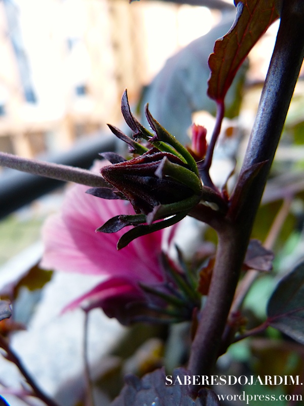 Eu estava super entusiasmada para fazer chás e geléias com a minha vinagreira, mas depois de pesquisar sobre essa espécie fiquei na dúvida se devo arriscar conhecer a comentada falta de sabor dela ou esperar pela minha muda de vinagreira tradicional, aquela que ainda não sei de onde vem, quando vem e se vem, mas que estou procurando. Vou tentar achar sementes ou mudas na minha próxima viagem à Holambra para a Expoflora desse ano. Até lá, agradeço se algum leitor do blog que tenha experiência com a vinagreira roxa no uso culinário comentar o post. Realmente gostaria de saber se vale a pena usá-la.